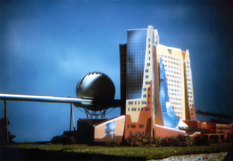Our proposal HS Pantheon for the Gasunie, Dutch producer of natural gas, is to switch from mining to the distribution of gases from organic waste. The design of the temple adjacent to the office-building creates a meeting place for enlightened businesspeople from all over the world. The idea refers to a pantheon that is reached through a tilted cross-border magnetic railway.